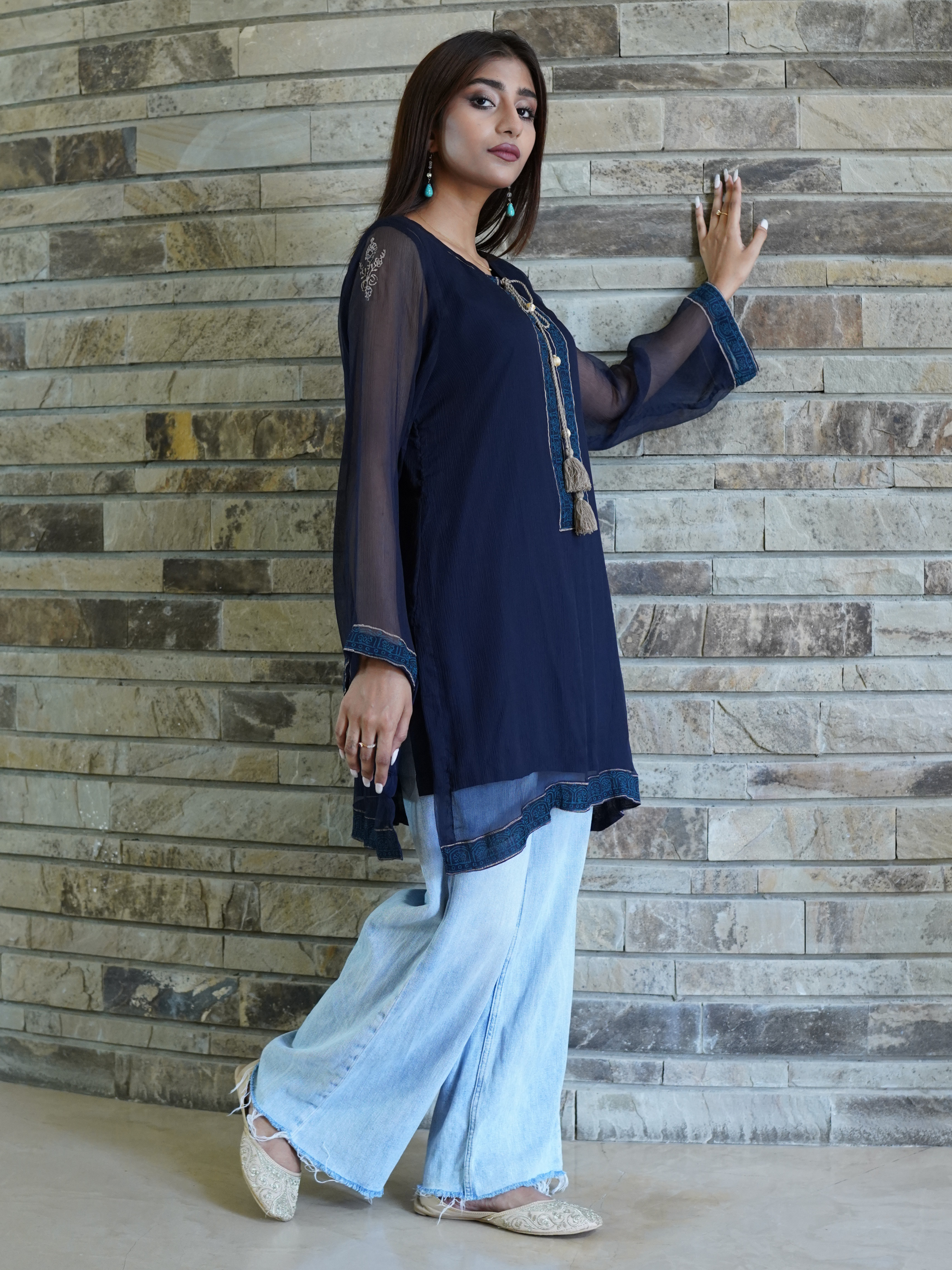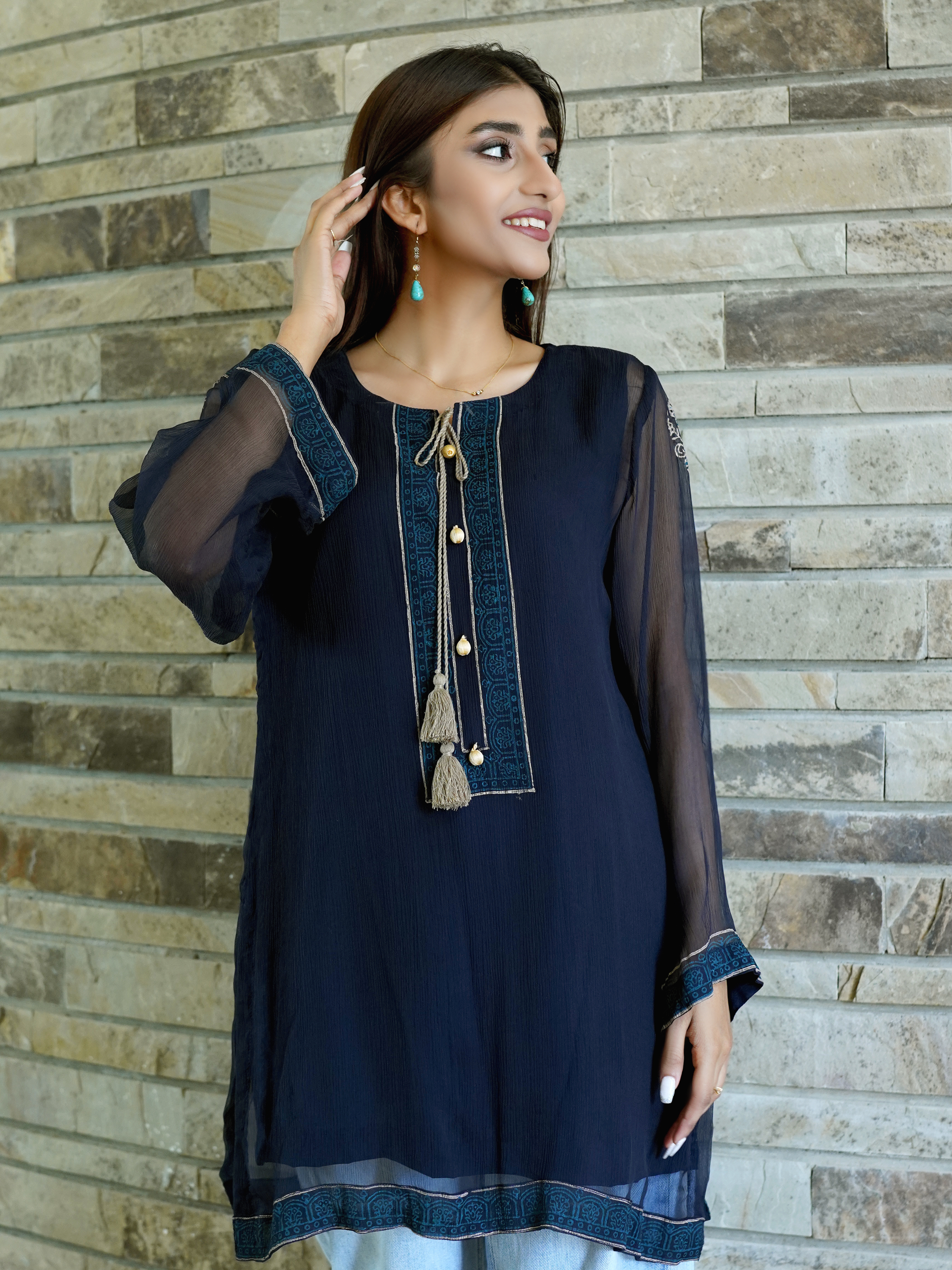 Chiffon Block Printed Stitched Kurti to Paired with Bottom of your Choice